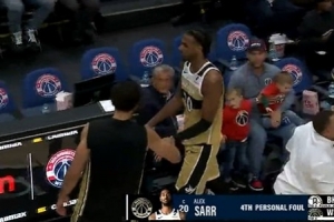 轴心脚没站稳!杨瀚森连续转身勾手命中 但被吹走步进球无效
