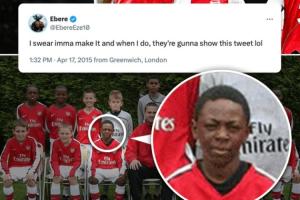 体育资讯11月24日讯 阿森纳4-1完胜热刺,笑傲北伦敦德比,埃泽成为了本场比赛的帽子戏法英雄。赛后,埃泽早年的一条社媒动态被各大媒体和球迷再度挖出。