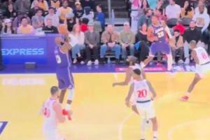 老虎发威!詹姆斯篮下打哈登 弧顶反击三分再射哈登 连得5分!